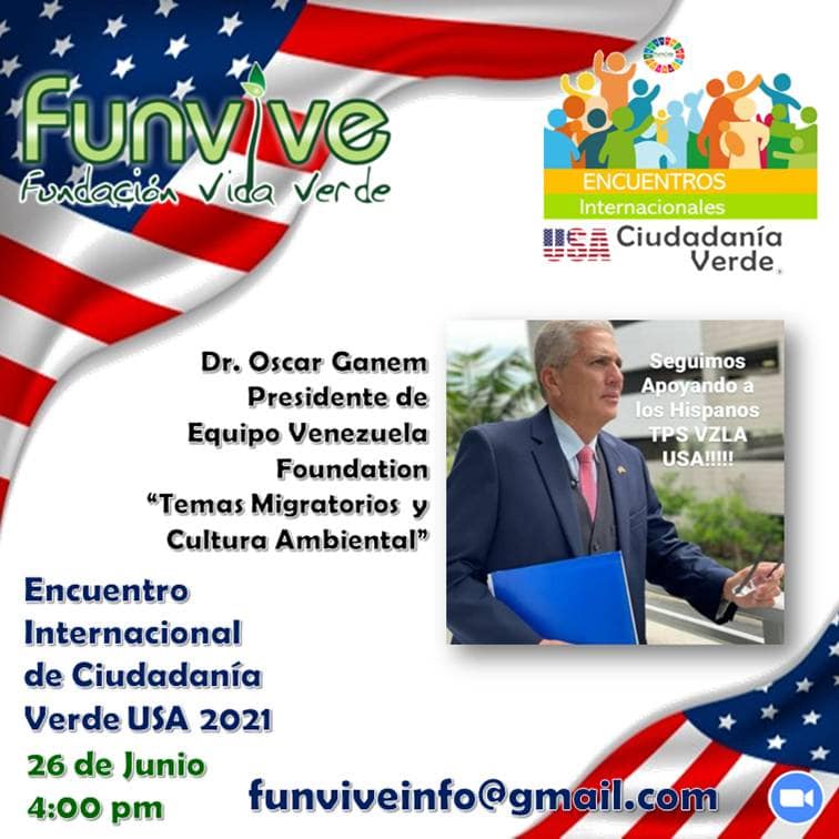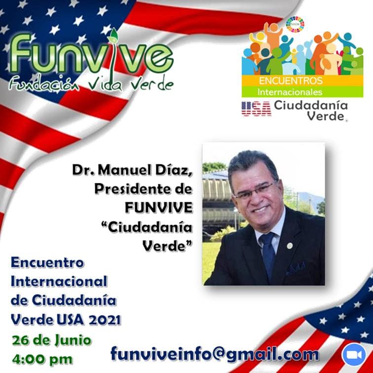 La Fundación Internacional Vida Verde *FUNVIVE*, invita a registrarse de forma gratuita y participar en el  “Encuentro de Ciudadanía Verde Estados Unidos» por medio del siguiente enlace: